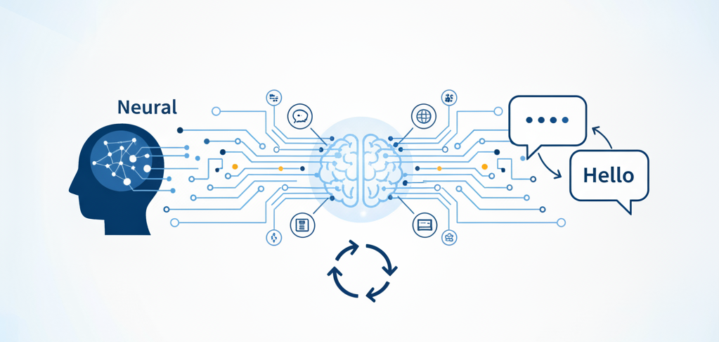 文脈やニュアンスを汲み取った、自然で流暢な「意訳」が劇的に得意になりました。 - 翻訳のプロセス: NMTは2つのAI(エンコーダーとデコーダー)がペアで働きます。