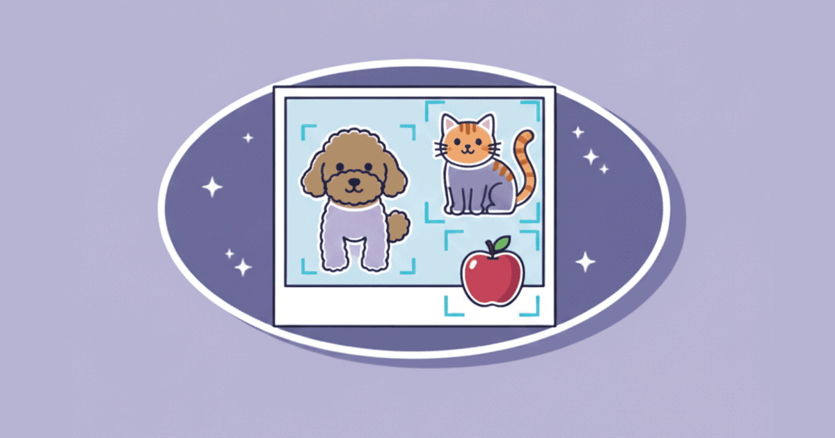 モノの正確な輪郭ではなく、「だいたいこの辺に犬がいる」という位置と大きさを「バウンディングボックス(四角い枠)」で囲む技術です。 - 例: デジタルカメラが人の顔にピントを合わせるために表示する「四角い枠」がこれにあたります。